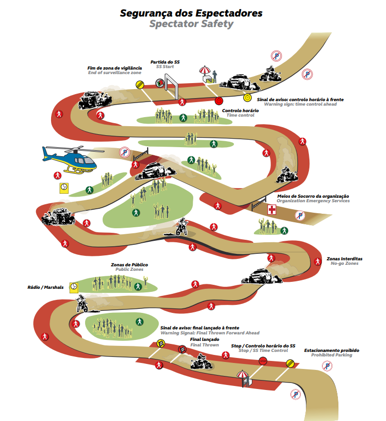 Apenas nos locais anunciados é permitida a presença de público. Estes locais estão devidamente identificados com fita ou rede para definir a área dos espectadores. É importante seguir as instruções das pessoas da Organização e/ou da GNR presente no local.