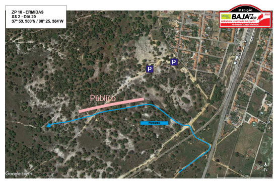 Junto à povoação de Ermidas, próximo da passagem de nível, acesso pela povoação. Os concorrentes atravessam a linha de comboio em velocidade reduzida, mas após 100m reiniciam a prova, numa zona com caminhos sinuosos em piso de areia. Consulte ZP10 no Google Maps.